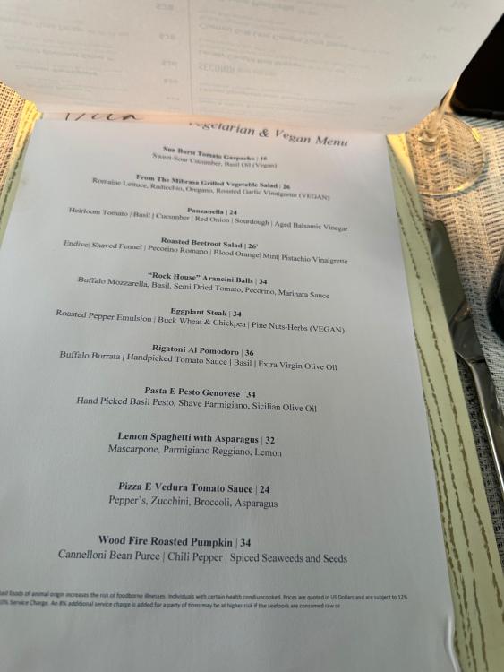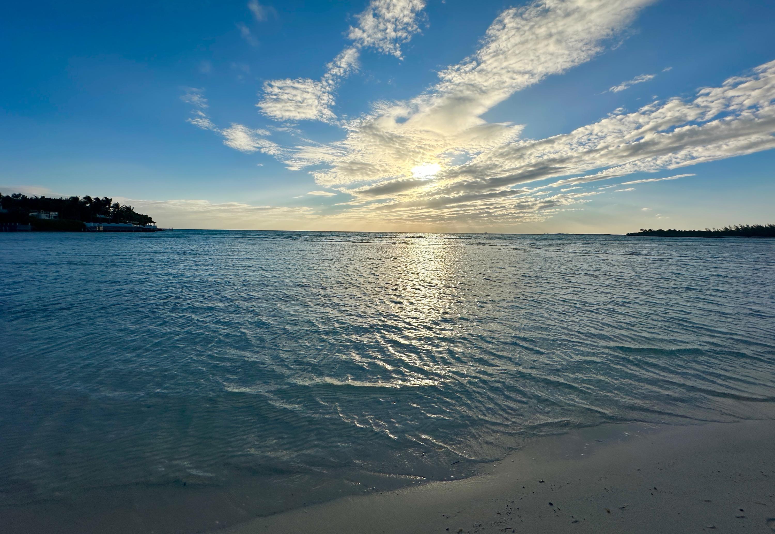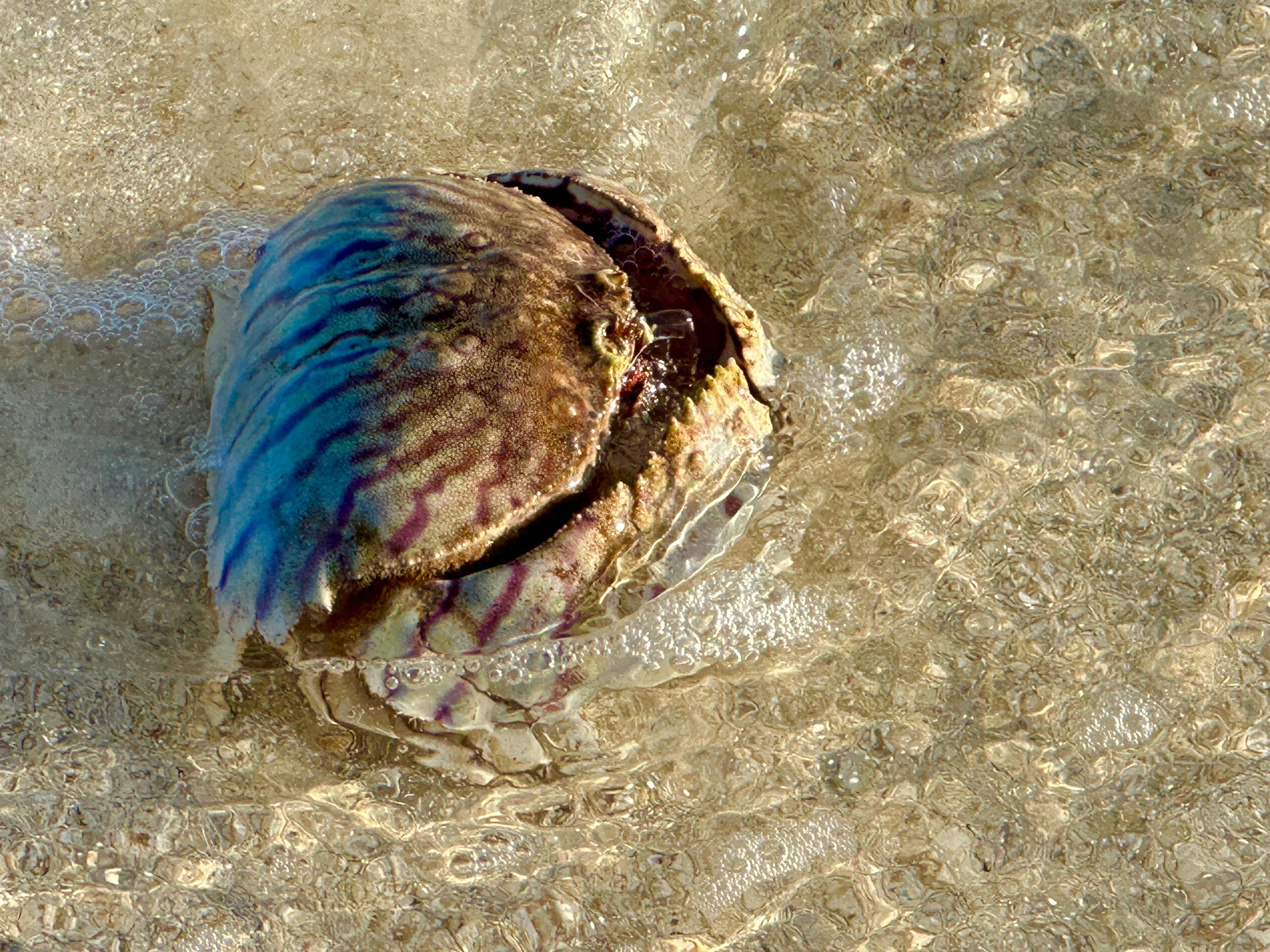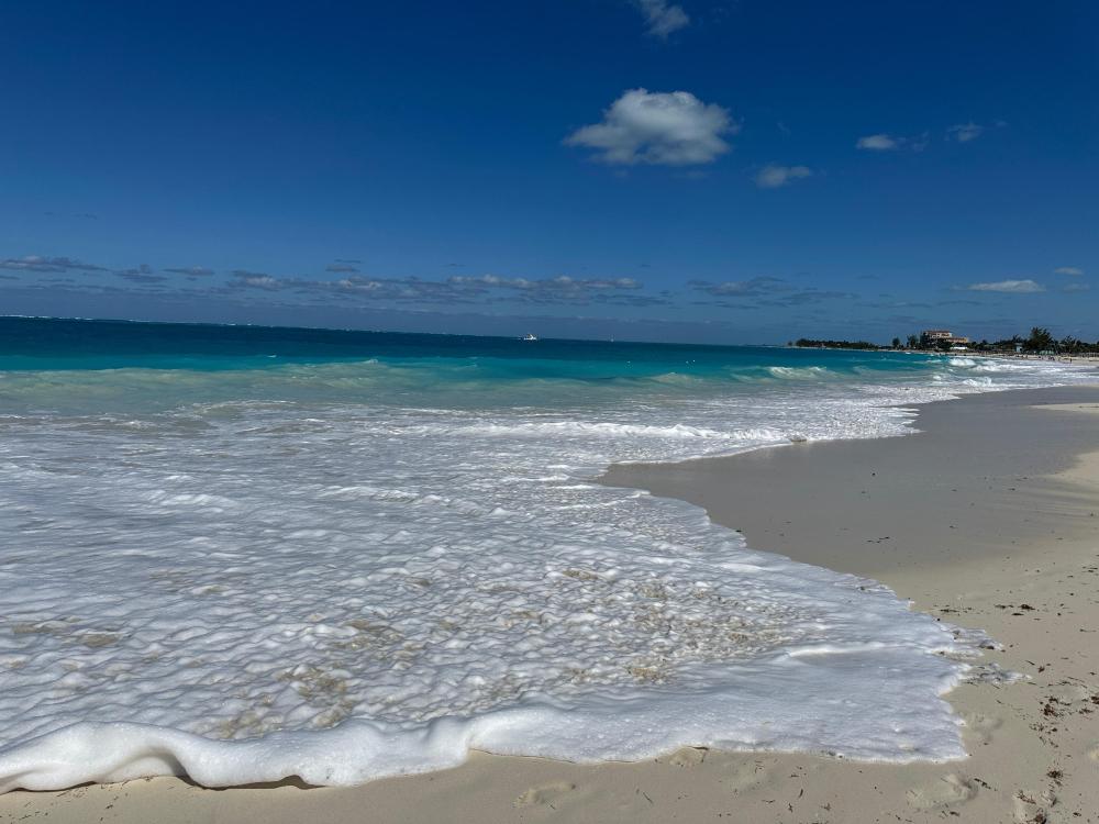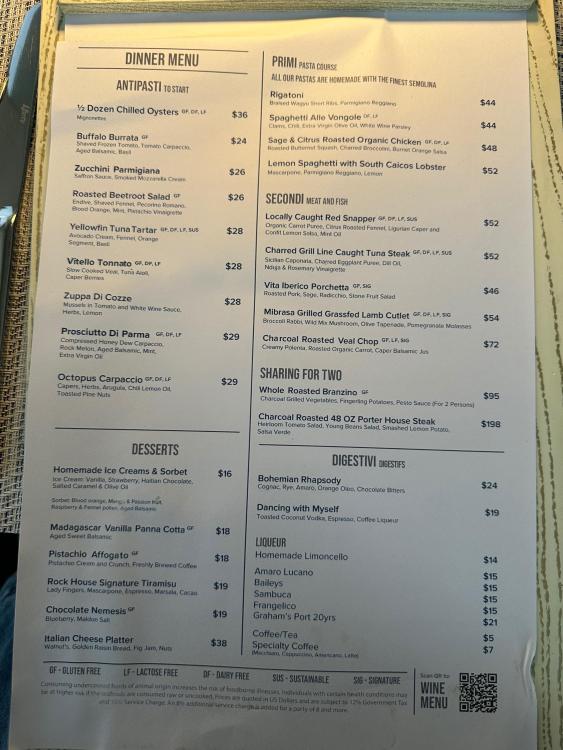 They were terrific. Not greasy, spicy, and full of conch. We also bought a slice of their key lime pie to bring home. I had it for breakfast this morning 😀 Yesterday we went for one last walk on Taylor Bay We found a big flame box crab hanging out on the shore Last night was supposed to be our last night on the island, so we booked dinner at Vita at Rockhouse, which is known for its spectacular setting. It’s built into cliffs, which makes it unlike the other properties on Turks and Caicos. It’s certainly beautiful. Here’s the view from the pool deck The menu Cocktail/mocktail And the restaurant. It filled to capacity moments after I snapped this picture. I had the zucchini Parmesan for an appetizer. It was so light Husband had the tuna tartare He he chose the lemon lobster spaghetti for his main And I had the snapper. The moment my entree arrived I was joined by a guest. This is Rocky, the mascot of the Rockhouse. He must like snapper because he sat next to me the entire dinner. He considered jumping up in my lap a few times, but settled for batting my leg to try and get me to feed him 🤣 I was told by our server that feeding Rocky is definitely allowed, so he got some of my snapper after all 🤣 We shared a pistachio affogato for dessert The weather back home is terrible, with 40-50 mph wind gusts and -20 real feel, so we decided to extend our vacation a few days. We had to leave the rental house, so are now at the Grace Bay Club for a few days. When we arrived to check in this morning there were two parties ahead of us that were also scheduled to go out on our flight home and changed their minds. I guess we were not the only ones with this idea!