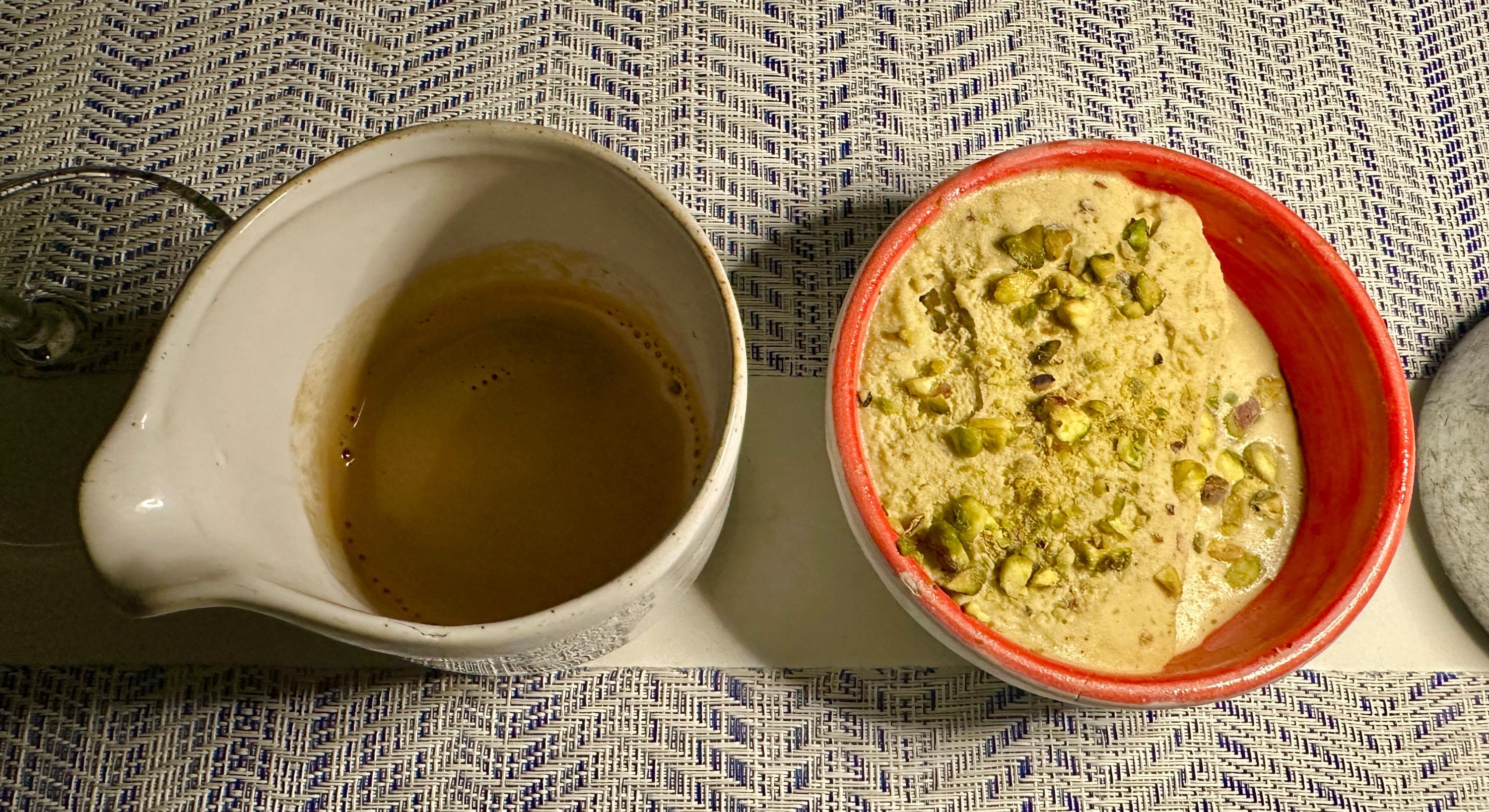 Aromatic slow burn for lunch: Shrimp, mushrooms, and roasted Poblano chiles with a blended sauce of Holland chiles, shallot, ginger, and garlic. Finished with gosht masala, fish sauce, lime juice, sugar to balance, and a dollop of heavy cream.