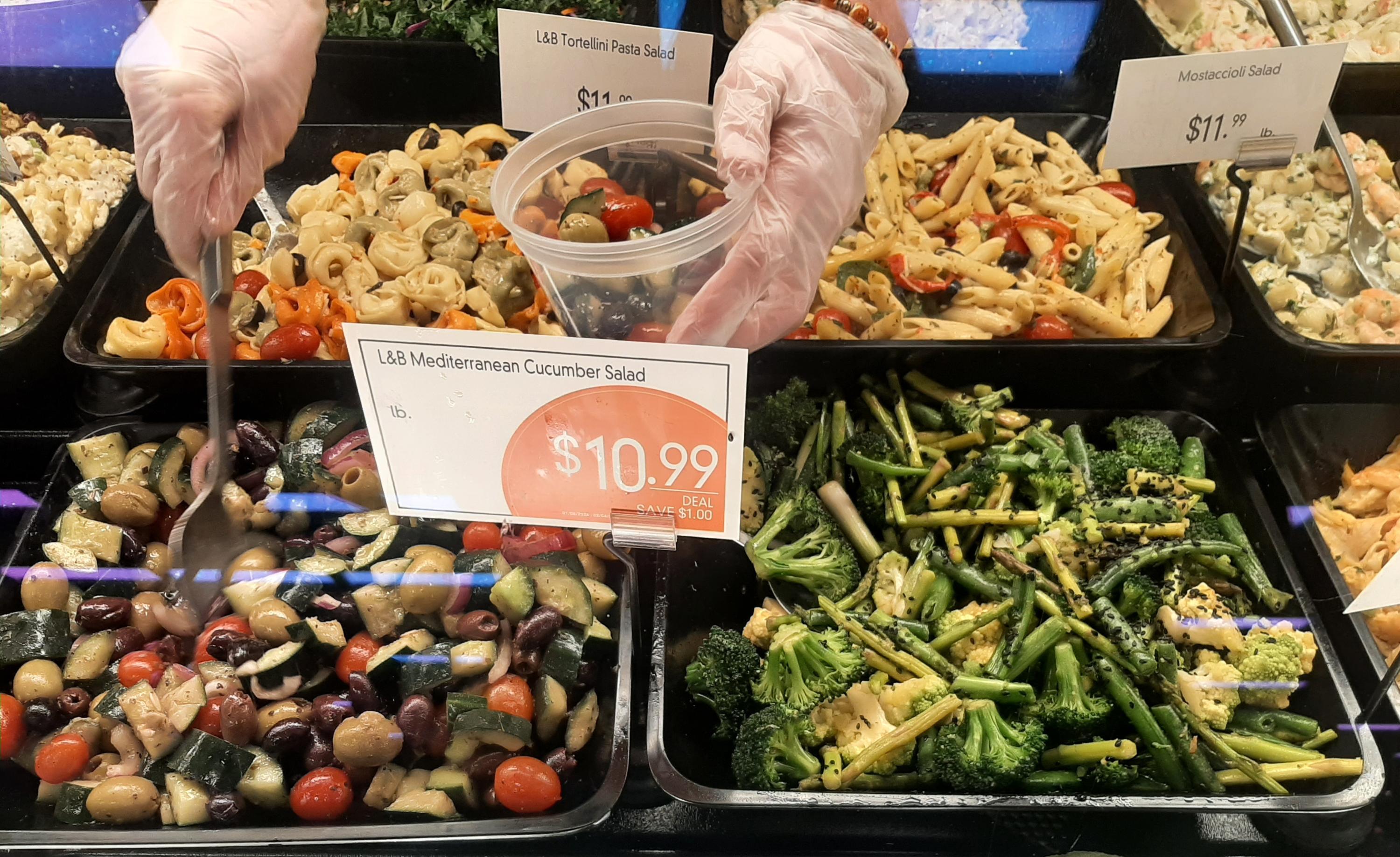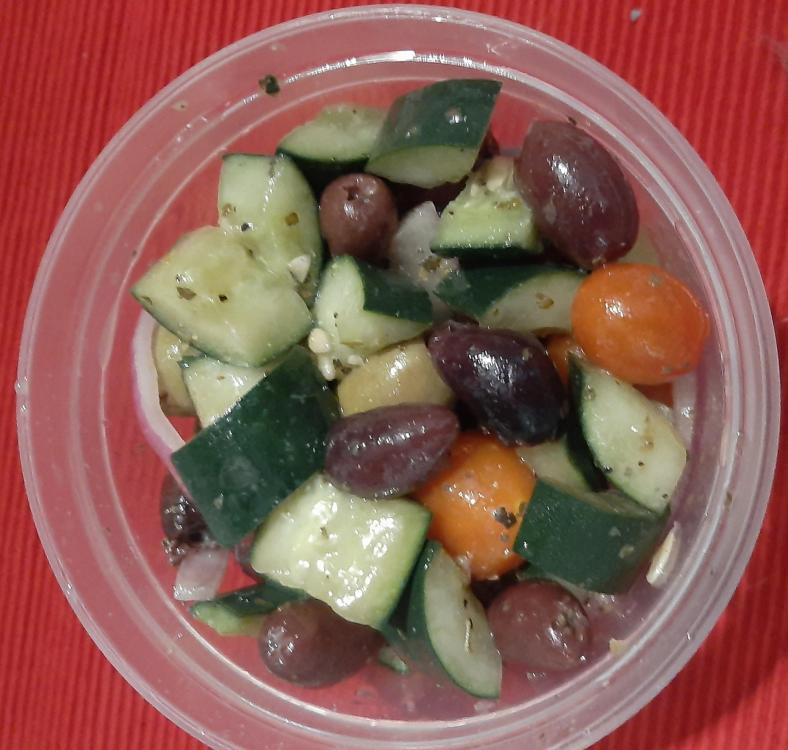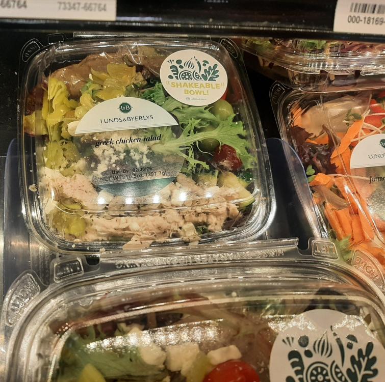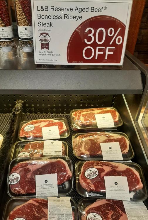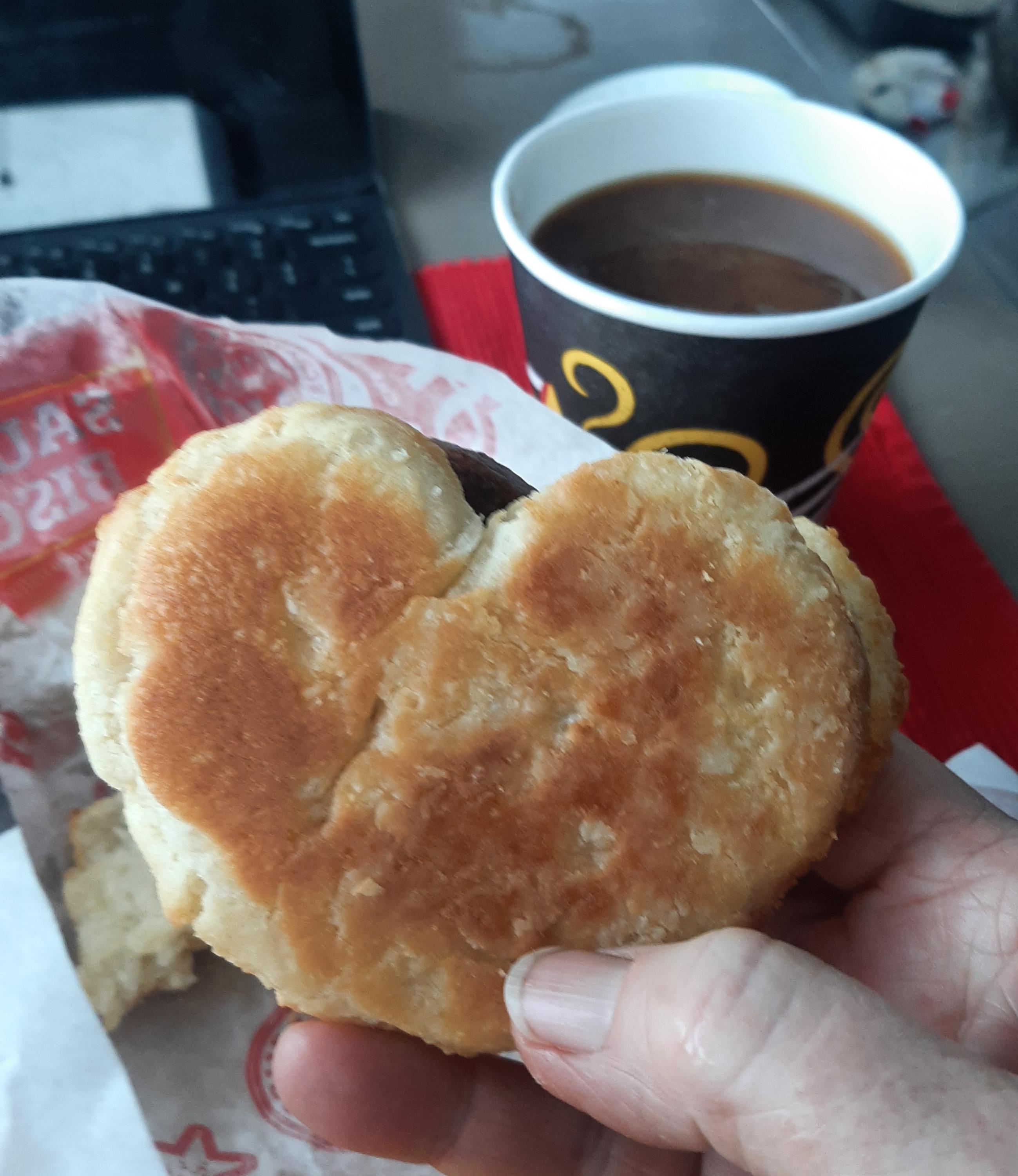 How I wish I had a campfire ring here! But no, the burnables all go into the trash. That will change soon, I hope. The mobile repair folks came today and jury-rigged a repair that I hope will get me through the season, or at least to a dealer with more pleasant weather. I may be able to move on tomorrow. With that in mind, I had what I hope is my last Hardee's breakfast for a while. Well, except maybe for tomorrow. (To be fair: I'm a little afraid of growing too fond of them. Their food isn't half bad, but it's no longer what I'm used to eating, and I don't think I should get used to it again.) I had made it in time for breakfast, so I treated myself to a sausage, egg and cheese biscuit, accompanied by their hash rounds or hash browns or whatever they call them. Potato thingies. I couldn't figure out why the biscuit was fracturing in such a funny way. Was it 2 biscuits? When I turned it over, I realized the fun.... We're coming up on St. Valentine's Day! Much, much later in the day I made what I hope will be my last trip to town, at least for this visit. I needed more half-and-half, and body cleansing tissues (what my darling used to call "baby wipes" and didn't that cause confusion in Egypt!) and I had some hardware I wanted to buy. The hardware was a bust. But this time, I actually used my phone to show you the barest hint of what a "Lunds & Byerlys" grocery store is like. As far as I know it's exclusive to Minnesota, focused much more near the Twin Cities than to where I live, and the highest of the high-end grocery stores in this state. I knew I'd be in trouble if I went in. But it was the closest. That's my story, and I'm sticking to it. This greeted me at the door: Sorry for the fuzzy photos, and I forgot to get the price on the mushrooms. But the ribeye steaks shown here and the sirloin steaks in another part of that display were "30% off!" ...from $39/pound. Yikes. They did look good, but I wasn't tempted. Their deli counter, both hot and cold offerings, was lovely. (Those gloved hands were dishing up my dinner.) I bought a Greek salad. What does "shakeable bowl!" mean? I'll find out tomorrow. There were soups I didn't buy and loads of cheeses -- this is half, or less, of their offerings: ...and plenty of produce I didn't need. This doesn't even scratch the surface, sorry. At this point I was wondering where the heck the half-and-half was. Not in either of these display cases! I found it, and found myself mentally yelling "lemme outta here!" as I wandered, lost, along endless aisles. I did pick up some crackers. It took a while to find the ones I wanted. Back home, really quite hangry by now, I tucked into the Mediterranean cucumber salad I'd bought there. Delicious stuff. The dressing is a tart, but not too tart, vinaigrette. I kept thinking it needed something more substantial, so I wandered across the way where I needed to pay my camping fee anyway. They have these things called "tornados" that I've been wondering about. They look like tortillas wrapped around hot dogs, and they seem to be cooked like the hot dogs in these roller displays, where the cylinders rotate over heat and gradually move to the "cooked" area. They advertise the filling as "steak and cheese", "pepperoni and cheese", "Southwestern chicken," and so on. I decided to try a couple. I didn't take a picture of the intact product (what can you do with a cooked, breaded cylinder?) but after trying a bite of two of them, I opened the contents of one: Meh. Didn't finish it. Went back to the cucumber salad and finished it off. At least now my curiosity is satisfied!
