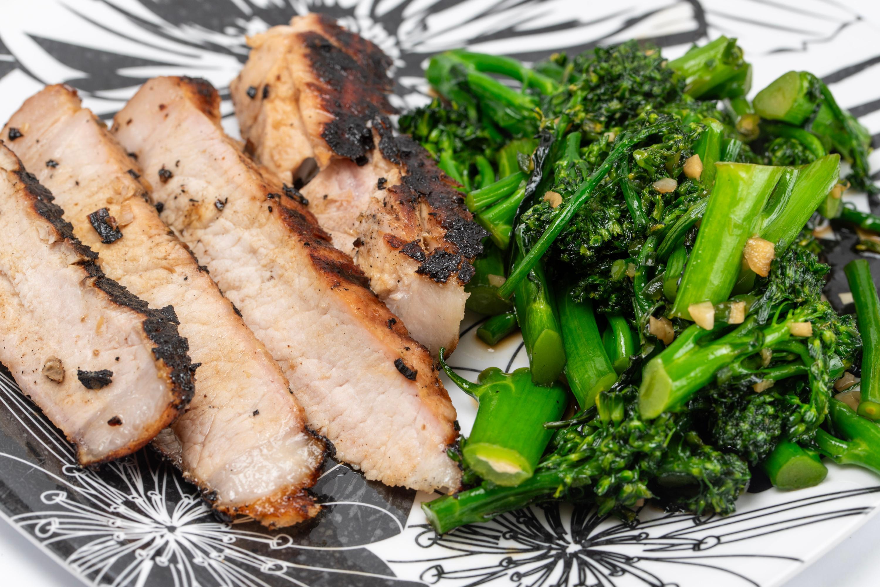 Grilled lemongrass pork chops: Marinate thick pork chops with minced lemongrass, garlic, scallions, fish sauce, soy sauce, sesame oil, whiskey, white pepper, sugar, and coconut milk. Grill over charcoal. Turned out well, will make again. Stir-fried broccolini with garlic, serrano chile, oyster sauce, fish sauce, and a little sugar.