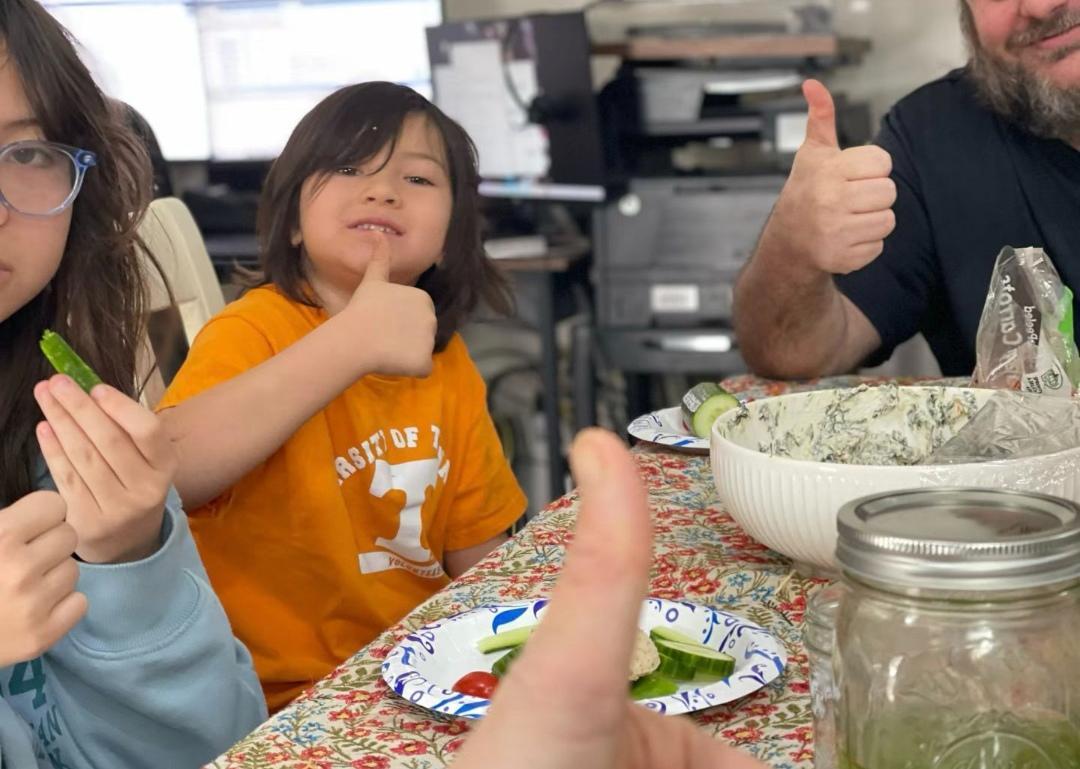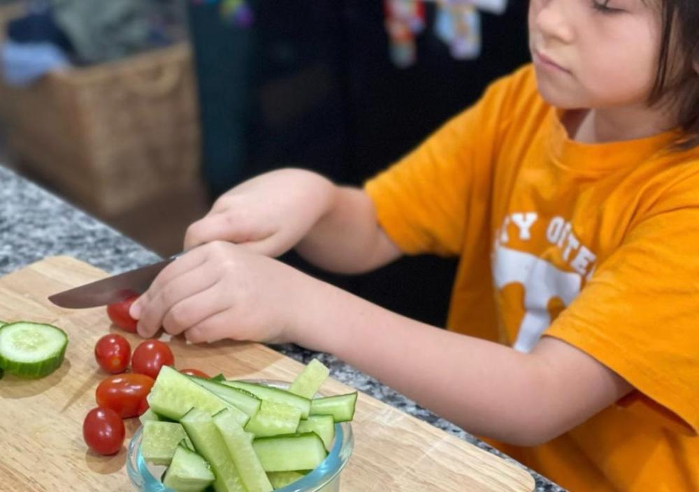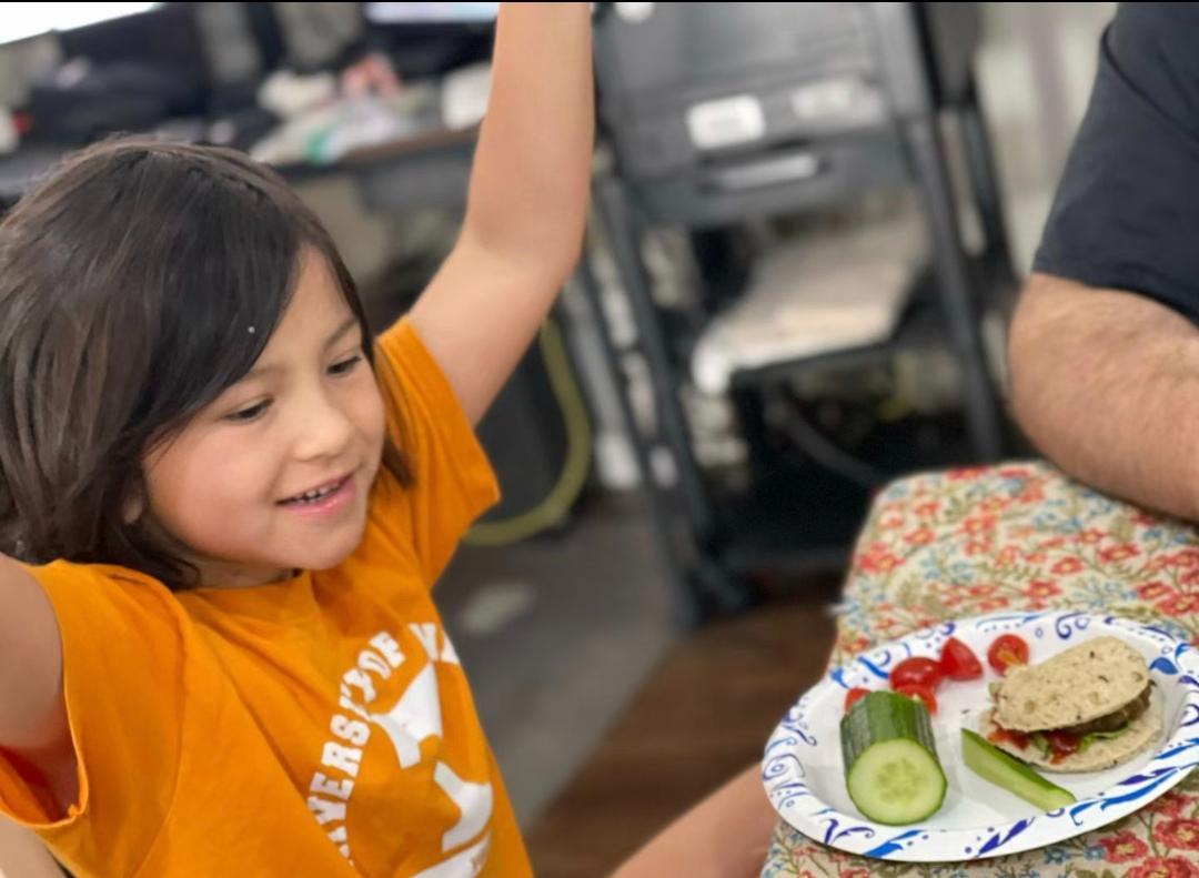 My friend's younger daughter made her first meal for the family. Her mother is Chinese; her father American. She is bilingual like her sister. They live America.