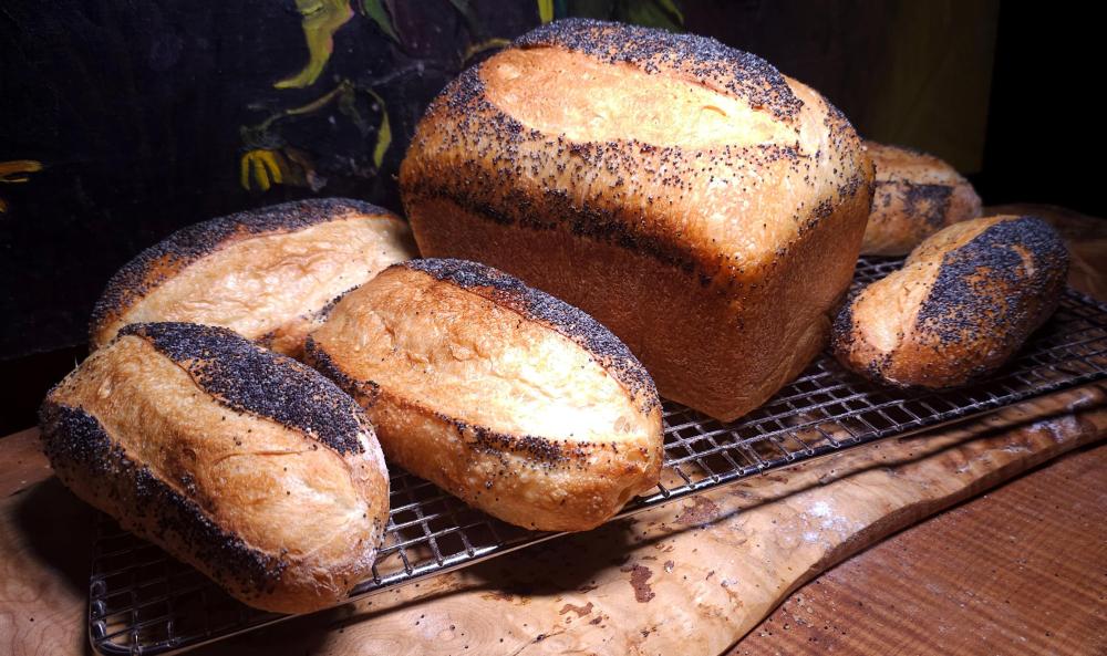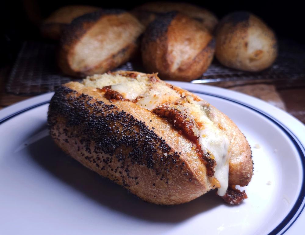 Yesterday morning I made my favourite meatballs. Pork, Garlic and basil. Moe had them over linguine for breakfast. And this morning I made him a meatball "sub" on a freshly baked bun. Fed a "scrapings" of the jar to make a starter before leaving for work yesterday morning and used it last night in an enriched sourdough. Left dough out on the counter overnight and baked early this morning. One sandwich loaf and six sandwich buns.