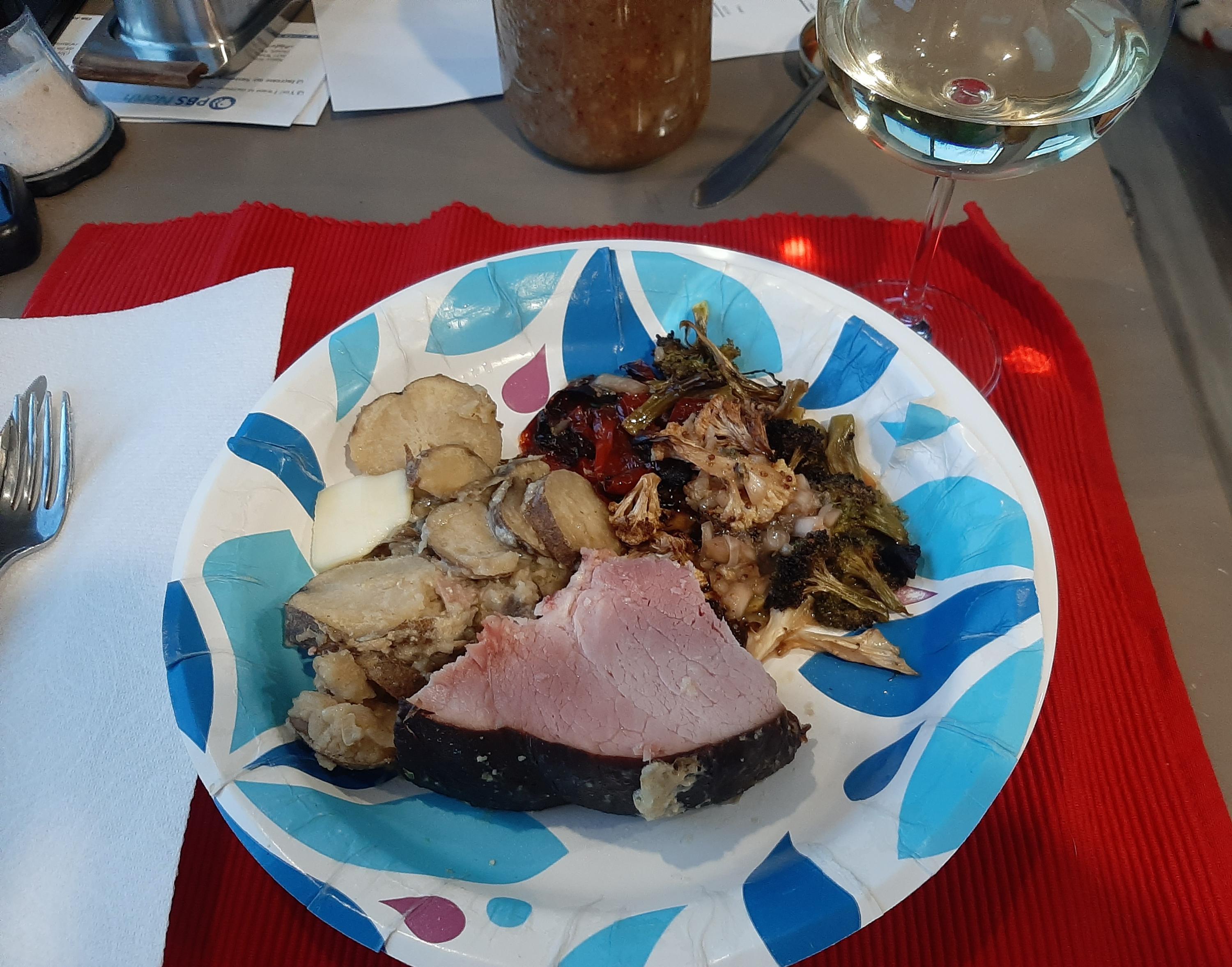 The article does mention the tradition of the crab (or crawfish) boil as a launching point, but this is apparently waaaaay past that. Pasta, really? Or even a big bucket of fried chicken, although I'll admit it could look like it had started that way once my darling and I were done with a bucket. I think I'd draw the line at anything that requires cutlery. Good idea, @Maison Rustique, about being otherwise busy. 🙂