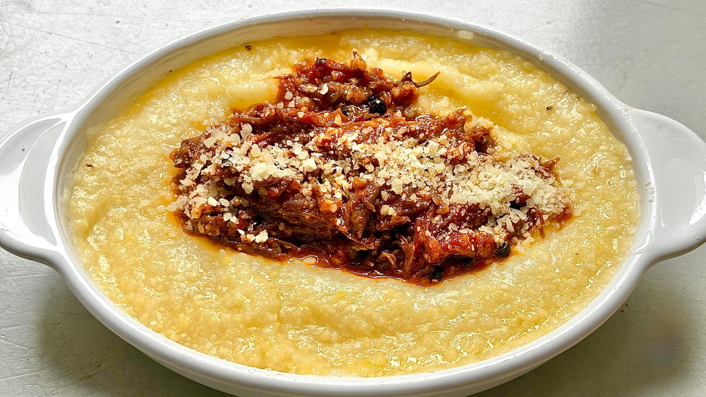 Cooked up a serving of polenta in the Instant Pot and topped it with some of the short rib ragu with black peppercorns from Six Seasons of Pasta from my freezer stash.