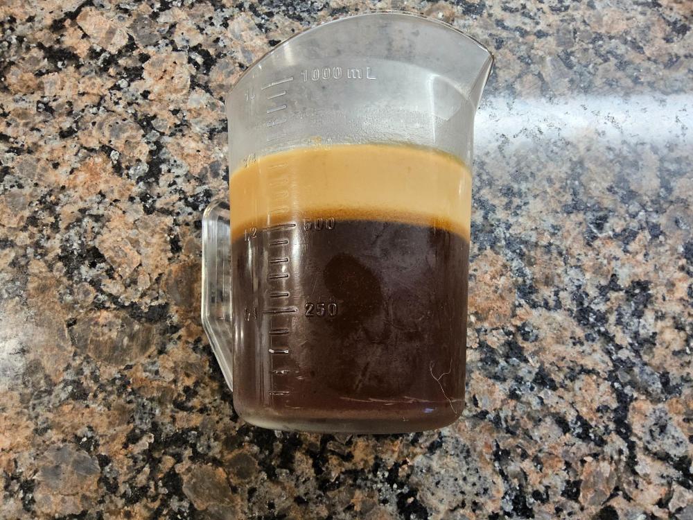 I asked my butcher for turkey bones to make turkey stock and roasted them prior to making said stock. I had a lot of them, and browned them after which they hit the pot along with some carrots, celery, onion. Whenever I do this, I reduce it to a firm jelly like consistency and freeze it in ice cube trays. This is the first time it's separated like this. Both parts are equally firm. What caused it to separate? Do I need to rewarm it to blend the two parts back together prior to freezing?