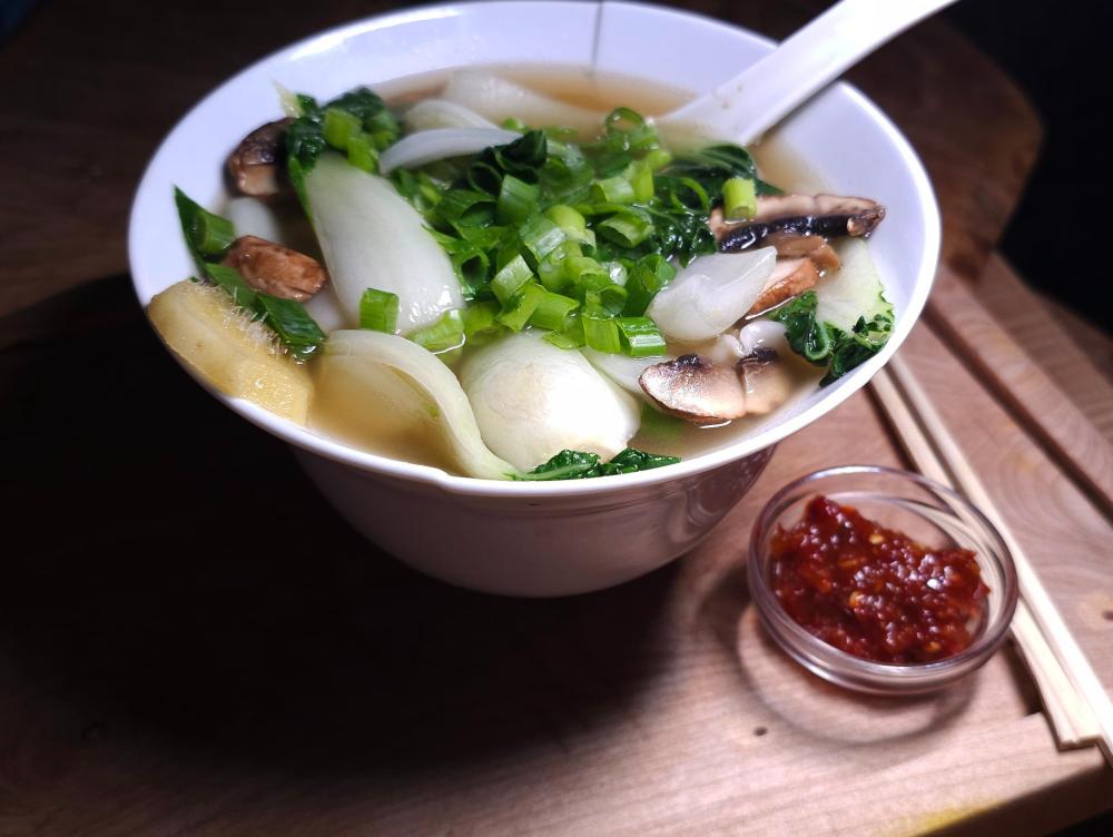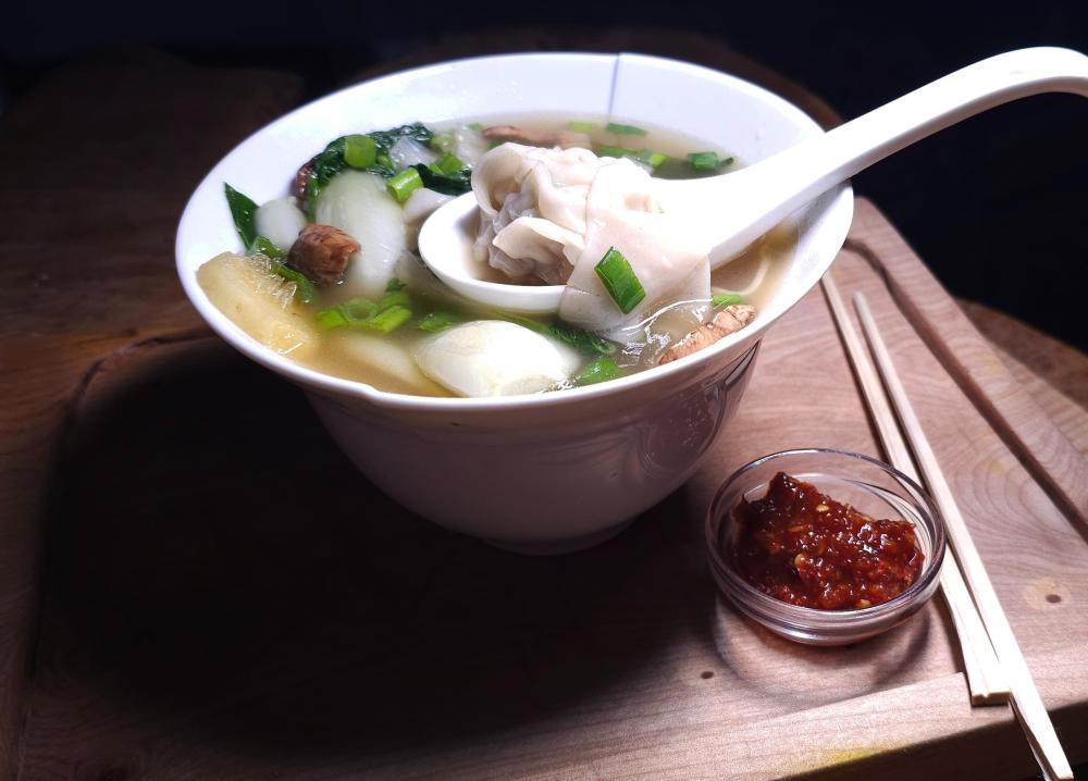 I still had the wontons I made last month in the freezer so I pulled them out and made wonton soup for dinner.