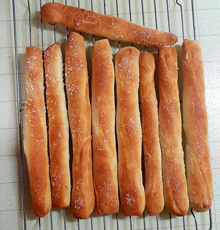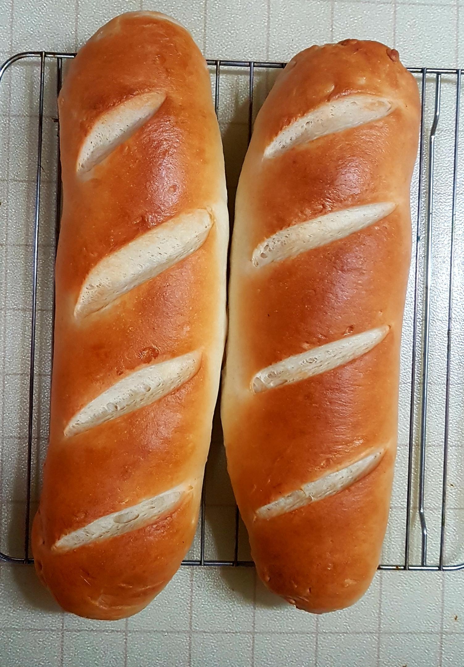 This is my bread baking for the last couple weeks. Last week I made sourdough bread and rolls. The Stars aligned for me and it was some of the best that I've made. Didn't do anything different so I just got lucky. Few days later I made Italian breadsticks (grissini). They were okay but not a recipe that I will repeat. They were more chewy than crispy. Carlos love them so they weren't a total failure. Then I made yeasted gingerbread loaf. That was a fiasco. I started it at 7:00 in the morning and it wasn't ready to go in the oven until 4:00 in the afternoon. It just wouldn't rise. I thought maybe my yeast had gone flat but I decided to do some internet research and found out the problem. I've always had problems with very sweet dough rising but I found out that there is a limit to how much sugar you can use for the amount of flour. This recipe had double that sugar. Further research revealed that cinnamon is also a yeast inhibitor. Who knew? The most you should use is one teaspoon for 3 cups of flour. This recipe has two tablespoons. So this time it wasn't me, it was a bad recipe. It tasted good but it wasn't worth it. So yesterday it was back to the basics. Just plain old baguettes. Nothing fancy but they taste good.