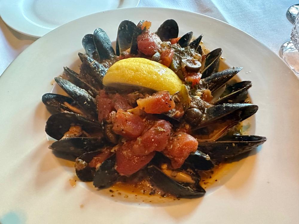 15. I’m on a very quick jaunt to Bermuda to celebrate husband’s birthday. Flying time is under two hours, and it’s warmer here than at home. We arrived yesterday, and only plans we made for this fast visit were to sit on the deck and take in the view, go down for occasional beach walks, and eat fish for dinner. We have been successful in following the itinerary so far. The view from our condo at the Reefs Looking towards the hotel from our deck and a sliver moon view from our arrival evening. The sun sets just after 5 at this time of year. There’s a new restaurant at the Reefs. Here’s the menu We ordered a special of lionfish crudo to share. I would have preferred the fish to be sliced a little thinner, but the flavors were good. Husband had the grilled lobster. He said it was delicious i had a special of coney fish, which came with carrot puree and the same asparagus sauce that was on the lobster. I really loved this Mini cannoli dessert We enjoyed our dinner so much that we cancelled another reservation elsewhere to come back tomorrow night. Today’s beach—Church Bay. The water was too cold for me to swim though other brave souls were in the water A light lunch at Coconuts Wahoo tacos. We just split this pate since we were going to dinner later. Tonight’s pre dinner deck view We went to Aurora for dinner. They have a new sushi menu, but we were not in the mood. Tuna tartare to share Husband had lobster and shrimp spaghetti. I think he orders this every time we eat here. I had a special of herb crusted turbot with potato purée, minced vegetables, and fish jus. We split a slice of coconut chocolate cake with coconut sorbet to continue the birthday theme