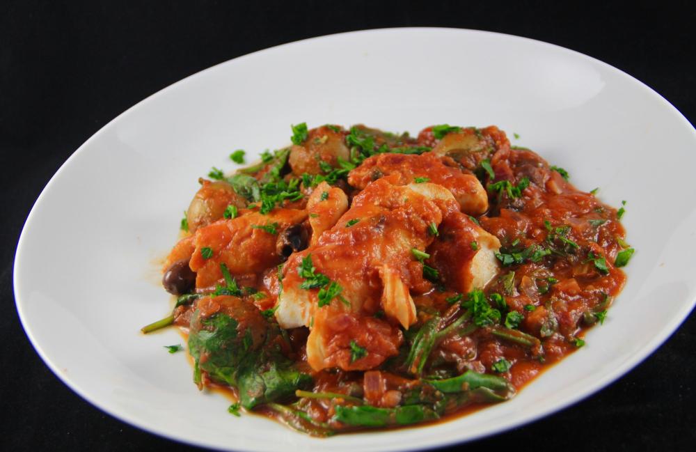 Cod in a spicy tomato olive sauce with spaghetti. The cod was from our fishmonger but did not taste as sweet and fresh as usual, which was disappointing.