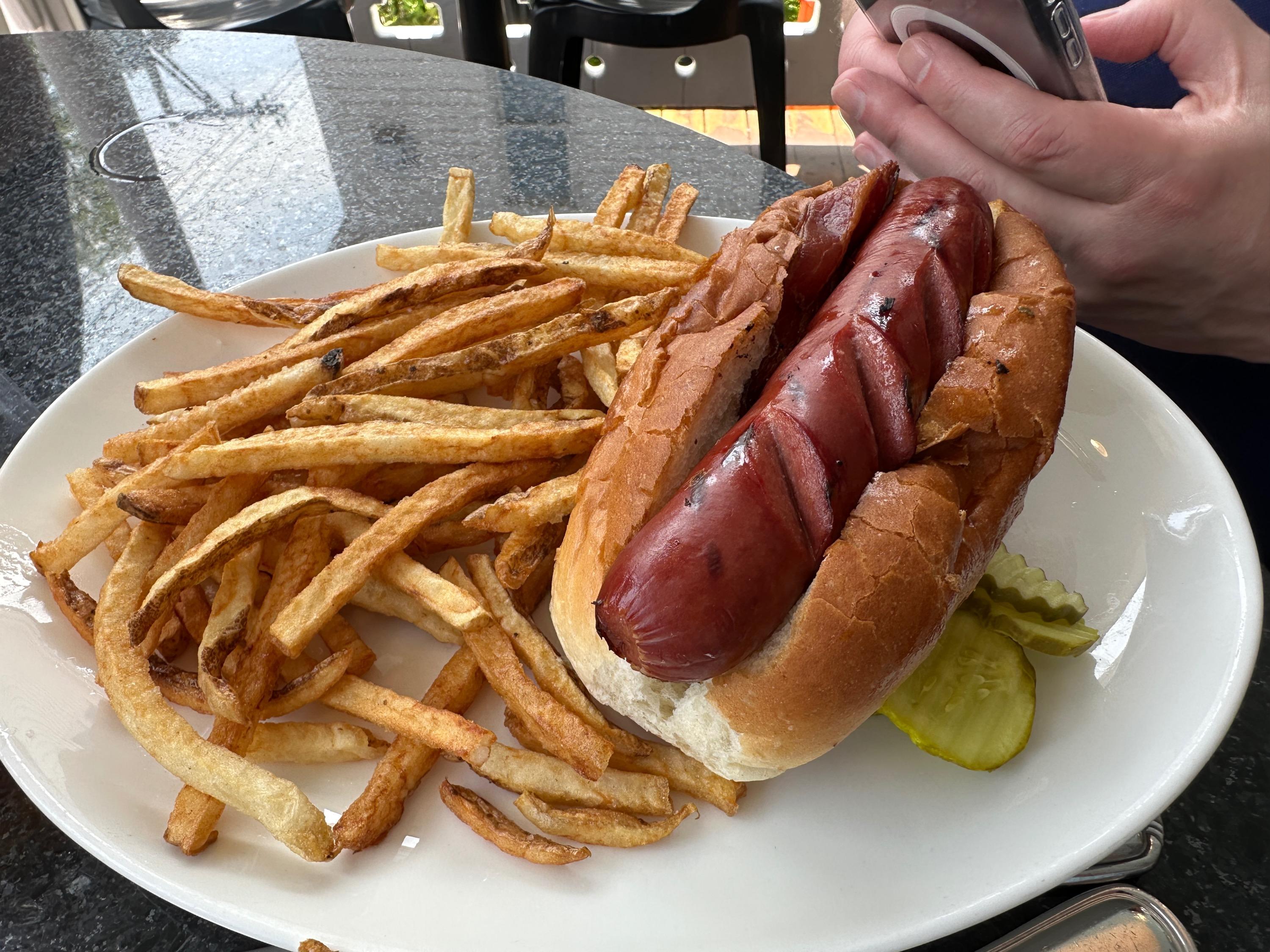 Not too many photos from Monday, as we did exactly what I said we were going to do: sit on the deck and take in the view and read books. Here’s a picture of the sunset from our deck. And the afterglow, looking towards the hotel Dinner was at Solaris again. Unfortunately, we did not like it as much this time. Amuse bouche of smoky gazpacho. This was really tasty. Husband ordered the rockfish. It looked pretty, but was a little bland. I had the catch of the day, which was grouper. This was better than the rockfish, but still a little bland. The pickled parsnip salad on top was the best part. We shared a dessert of pavlova with pistachio cream and strawberry-basil ice cream. This was our favorite part of the meal. And that ends our quick visit to Bermuda. We will be back.