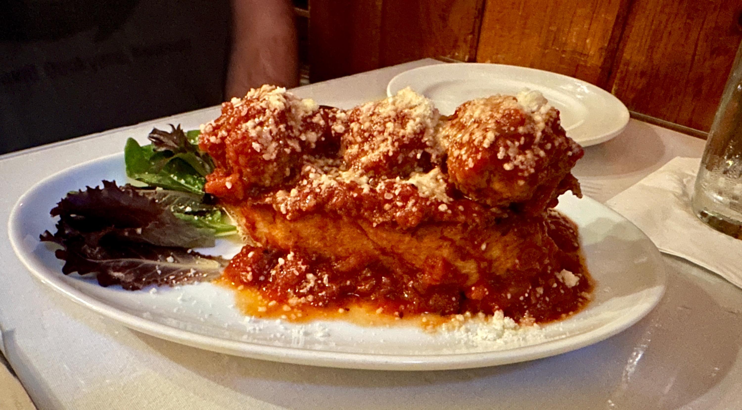 Swordfish braised in a spicy tomato sauce with capers, olives, currants, and Israeli couscous. Garlicky bruschetta for dipping