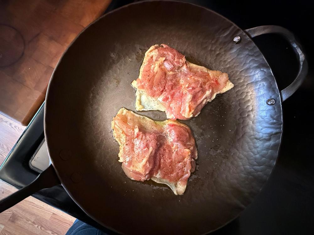 So pointy. Much stab. Hands down the thinnest tips of any knife except maybe the Kom Kom vegetable carving shiv. But the steel is tough enough that I haven't worried about tipping them in the drawer, and they've been there for years getting banged around. The steel is, I think, AUS-8 or 10 but don't quote me on that. They have a super asymmetrical edge bevel with an aggressive grind. I don't know that these are leftie-friendly but I don't know. You can see how rough the grind is, both in terms of evenness and the abrasives they used. I haven't done more than give them a quick strop, but they sharpen up well. Everything about them is kind of "rustic." The handles are a great shape but they're cheap plastic with an obvious seam and the pins look cheap. I want to snap my fingers and have them replaced with handles the exact same shape but made of bog oak with nice mosaic pins. But that's just me wanting to turn a $30 knife into a $130 knife because that is my way. If I could only get one, I'd probably get the shorter one. Seriously, check out how asymmetrical this grind is.