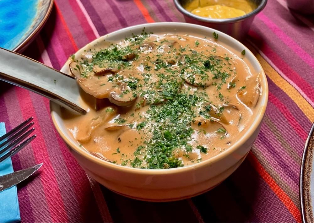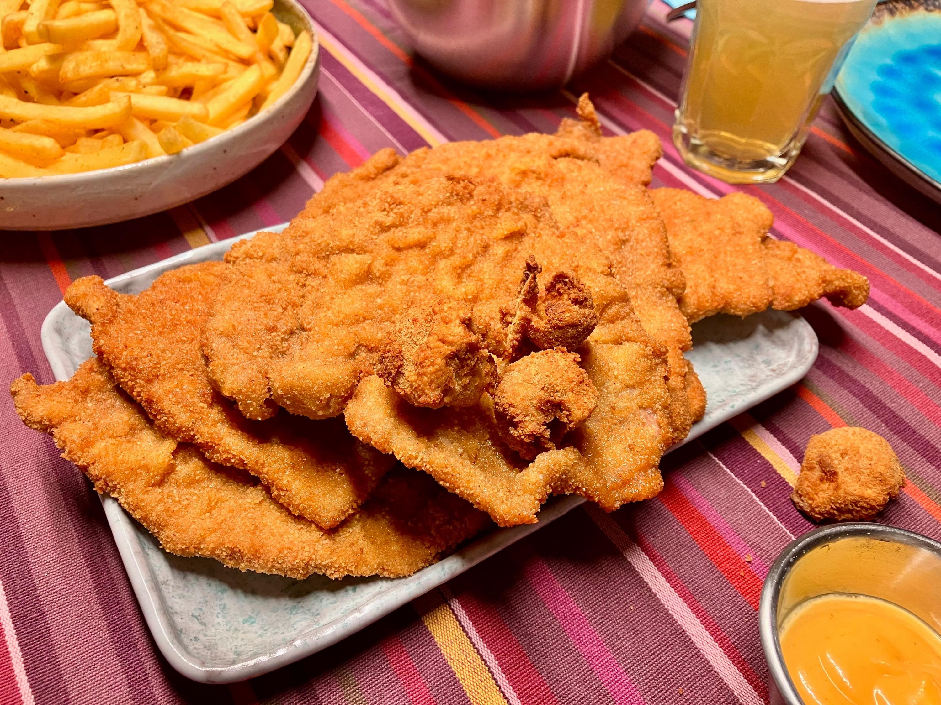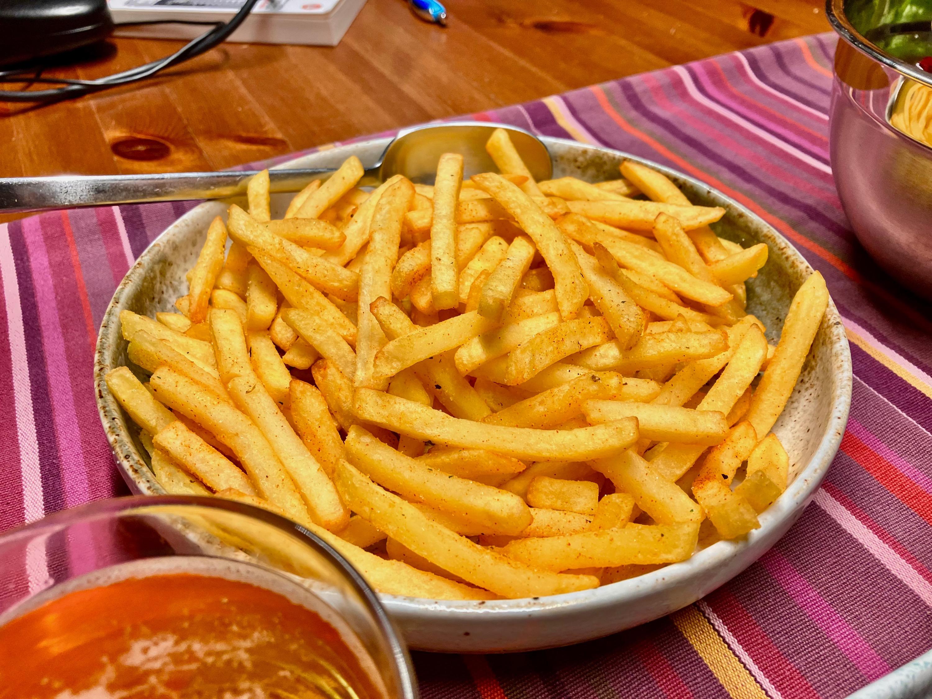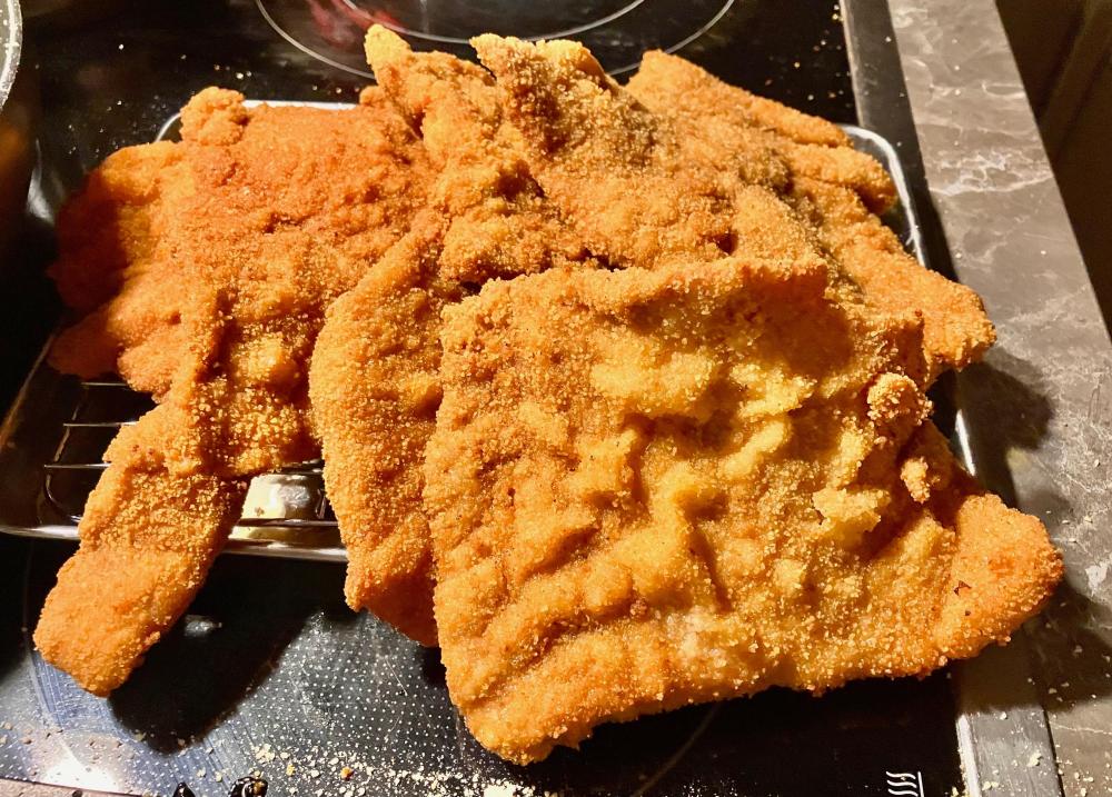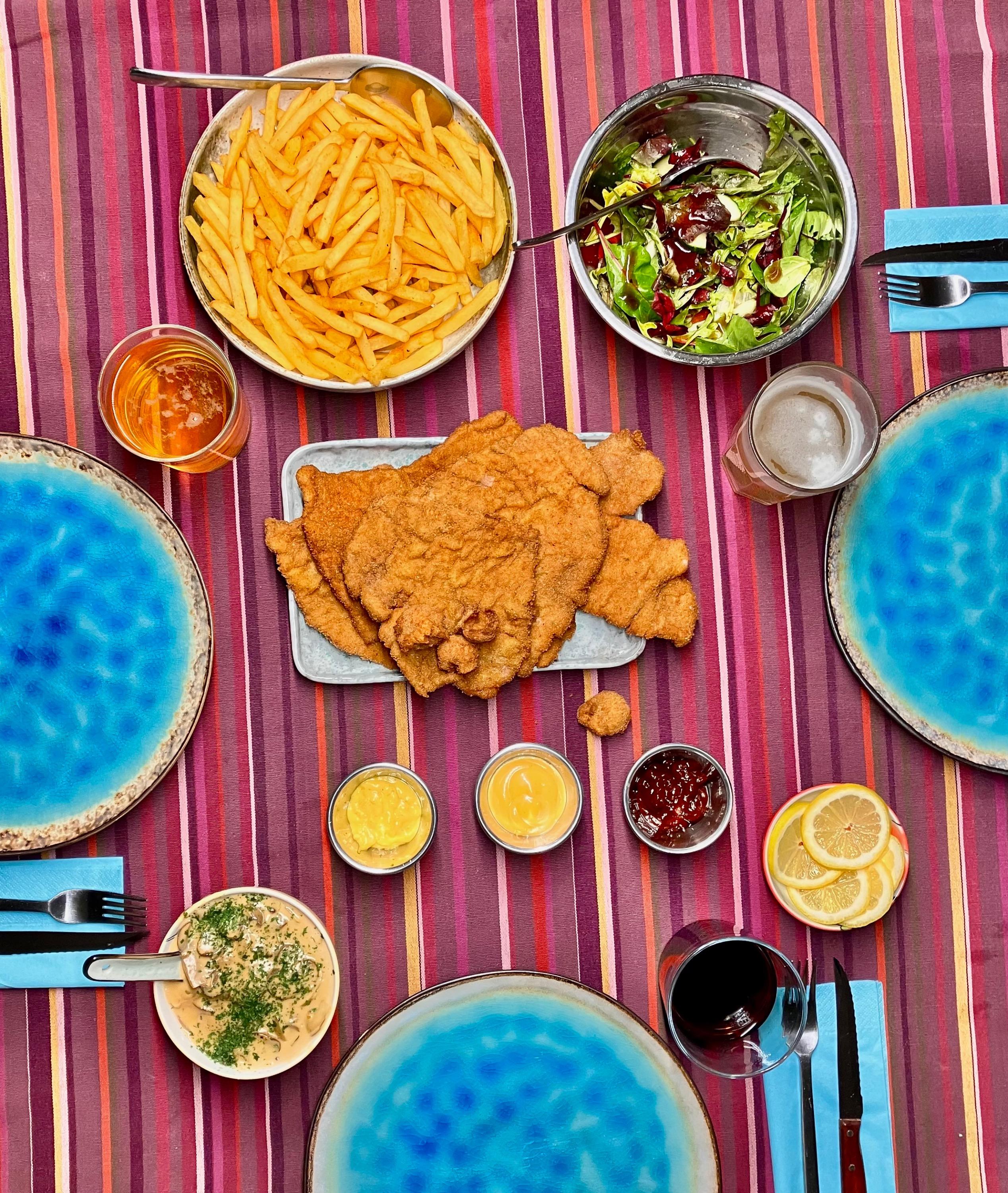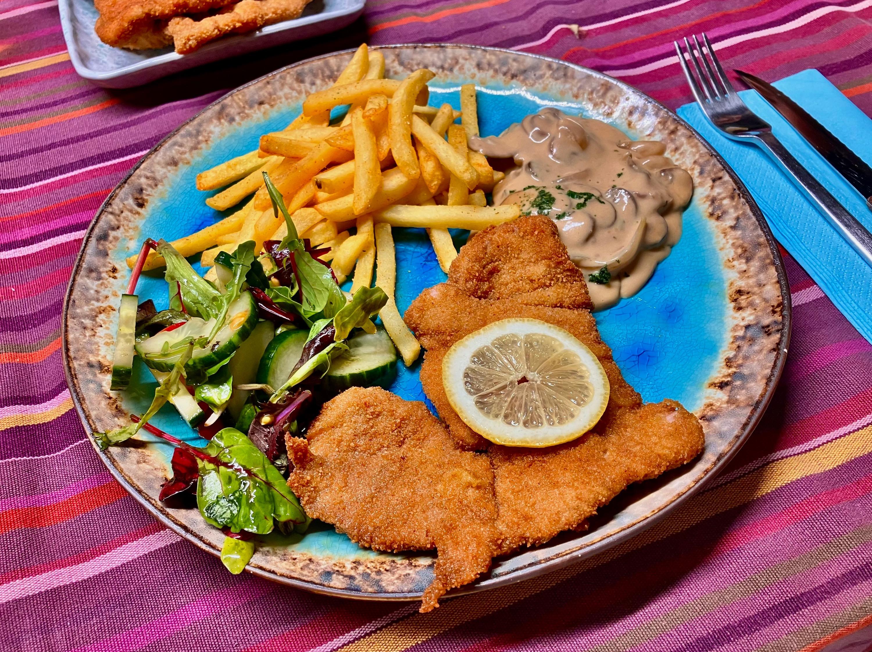 DW had to spend a few days im the hospital after a small procedure. You might have heard that German hospital food is not for the faint of heart … She was released todat, so I picked her up and asked for her first recovery meal - surprisingly, she opted for “more” German food: SchniPoSa - Schnitzel, pommes frites and salad. I bought some veal and got cracking … (Commercial) Fries from the airfryer, doused with Duvel dust - always a good option … Salad with balsamic reduction … And some mushroom cream sauce for good measure … Little one breaded the Schnitzel and had some breading on the tip of his fingers, which we fried as well 🙄 The whole ensemble … And as usual - plenty of leftovers for tomorrows Schnitzelbrötchen … Finally, from our trip back through France we had some puddings left. Paris-Brest themed: cream, caramel, praline - what can go wrong 🤗 No complaints and we are more than happy she is back 🥳