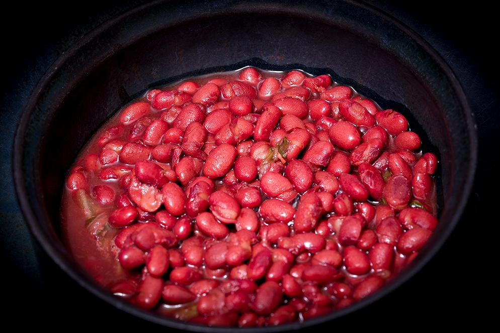 Cusk roasted with peppers, onions, and olives with a parsley vinaigrette, and some sliced roasted potatoes.
