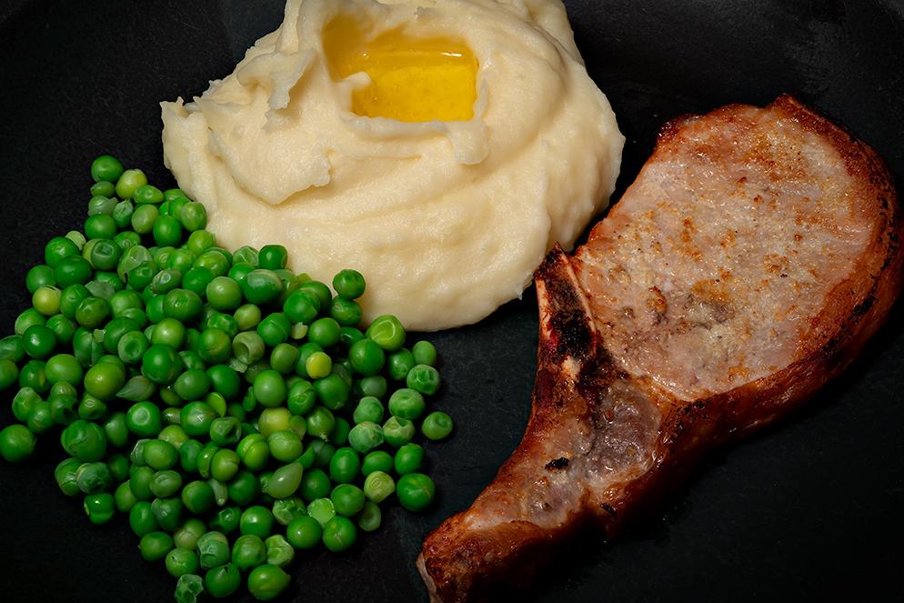 The chop was a skimpy, thin, Canadian, not inexpensive piece of pork that I would not have purchased had I seen it in the flesh.  After searing it was dry and overdone.  I don't blame the quality of the meat, I blame the thinness of the cut.