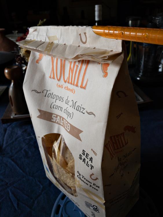 I use binder clips for chip bags and other bags without zip tops. That should work for your Xochitl corn chips. The GripStics are nice for sealing the large end of pastry bags.